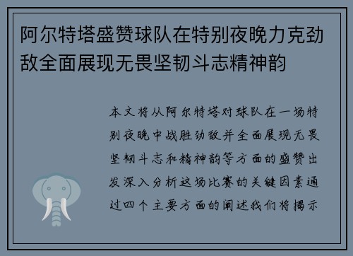 本文围绕维埃拉关于“心理素质是球员能否成为球队核心的关键天赋”这一核心观点展开,通过对心理素质与天赋关系、竞技层面中的心理稳定性、领导力的心理根基以及心理成长对核心球员塑造的影响四个方面进行深入剖析,旨在完整呈现维埃拉观点的深度与现实意义。文章首先从心理素质为何被视为天赋入手,解释它为何难以后天快速习得;随后分析心理稳定性对关键时刻决策、场上节奏掌控、压力处理的重要作用;接着讨论球队核心必不可少的...